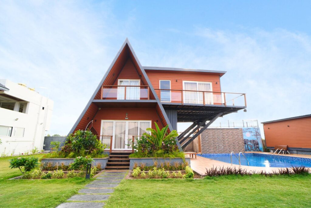 Unwind in our elegant A-frame and barn-style villas, where modern luxury seamlessly blends with nature’s