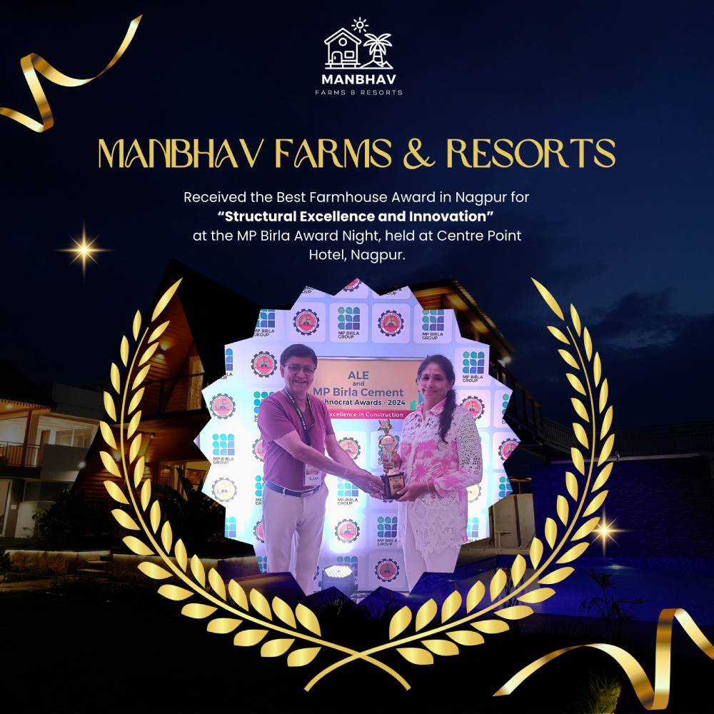 Best Farmhouse Award in Nagpur for Structural Excellence and Innovation at the MP Birla Award Night held at Centre Point Hotel, Nagpur. This prestigious recognition