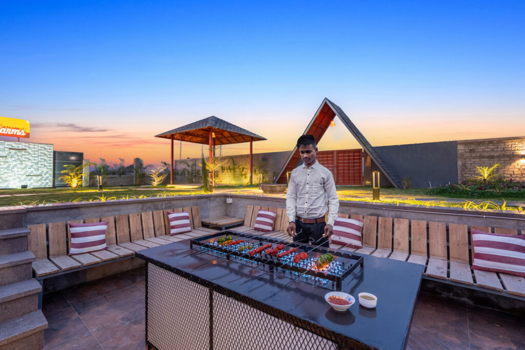 Your go-to spot for sizzling barbecues and cherished moments at Manbhav Farms & Resorts. Nestled in a cozy corner of our expansive property, this area is designed with the ultimate social experience in mind. Here, friends and family come together over delicious grilled favorites,sharing stories and laughter under the open sky.